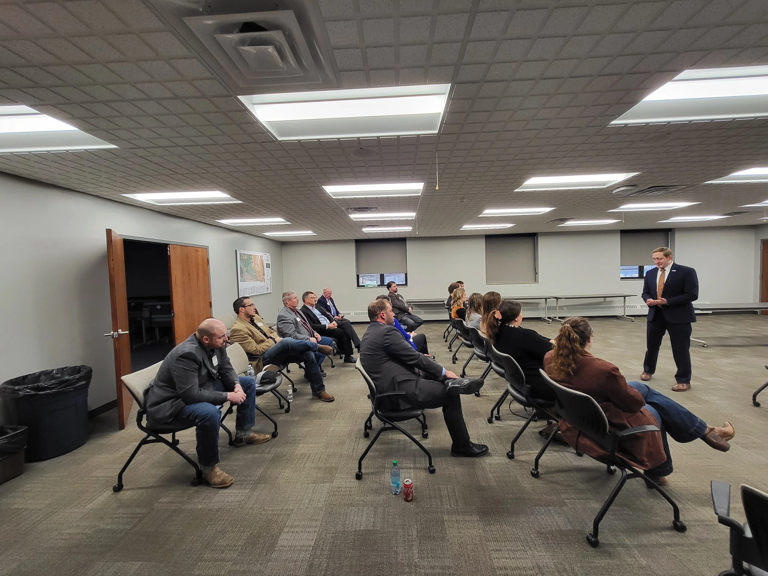 Next up on February 3 was observation of legislative committee hearings. The Genesis Leaders sat in on both the House and Senate Ag and Natural Resources committees and learned more about bills affecting zebra mussel management and cultivated proteins. Representative Drew Peterson (R-19), a member of Class 1 of the Soybean Genesis program, and Senator Brandon Wipf (R-22), then met with the group for a discussion about agricultural leadership in the the state legislature, encouraging class members to consider running for office. Next the class met with Governor Larry Rhoden, touching on current ag issues and the importance of leadership.